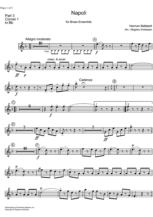 Digital Sheet Music for Napoli - B-flat Cornet 3 by Mogens Andresen, Herman Bellstedt scored for Brass Ensemble; id:327790