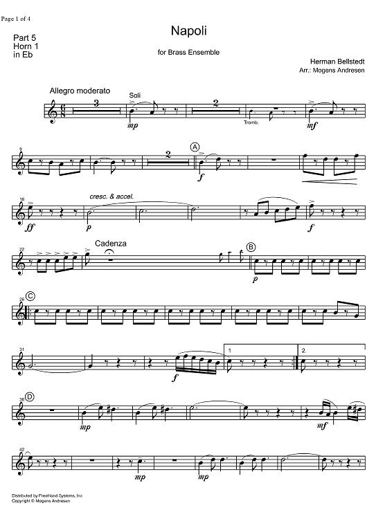 Digital Sheet Music for Napoli - Horn in B-flat by Mogens Andresen, Herman Bellstedt scored for Brass Ensemble; id:327789