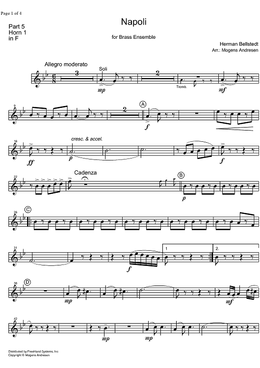 Digital Sheet Music for Napoli - Horn by Mogens Andresen, Herman Bellstedt scored for Brass Ensemble; id:327788