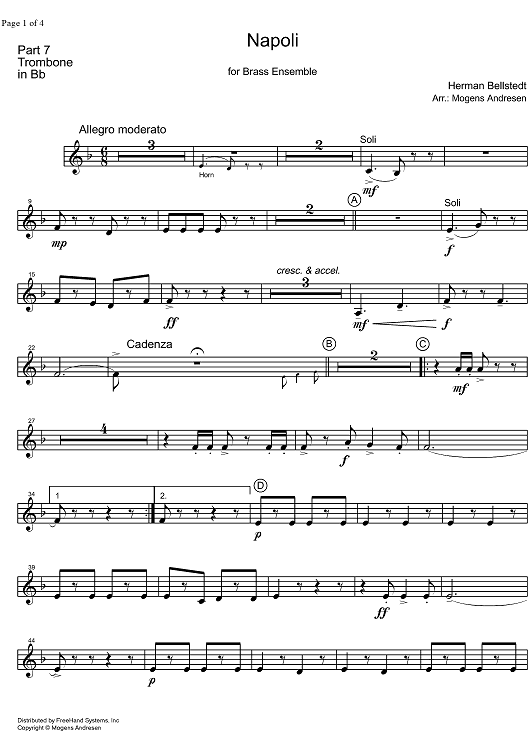Digital Sheet Music for Napoli - Trombone in B-flat by Mogens Andresen, Herman Bellstedt scored for Brass Ensemble; id:327777