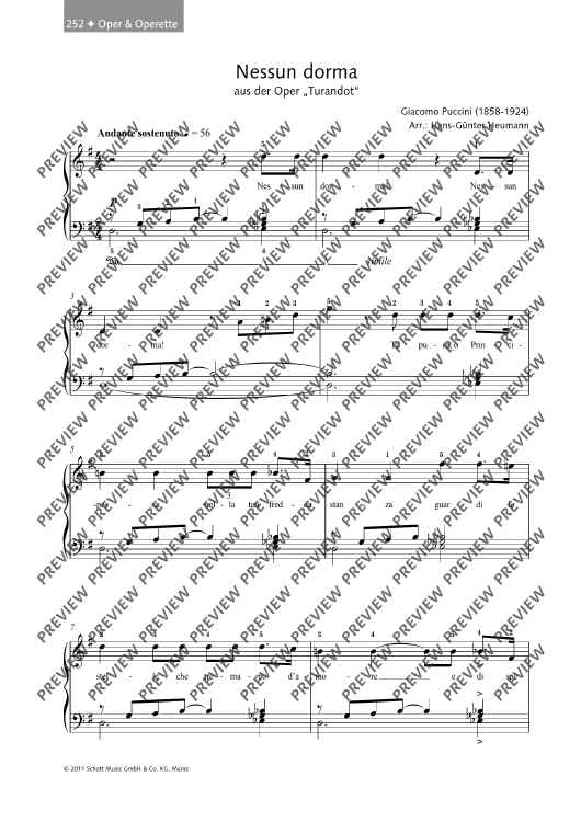 Digital Sheet Music for Nessun Dorma by Giacomo Puccini, Hans-Guenter Heumann scored for Piano; id:501582
