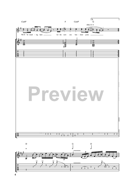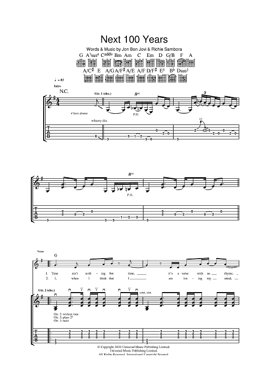 Digital Sheet Music for Next 100 Years by Bon Jovi, Richie Sambora, Jon Bon Jovi scored for Guitar Tab; id:393174