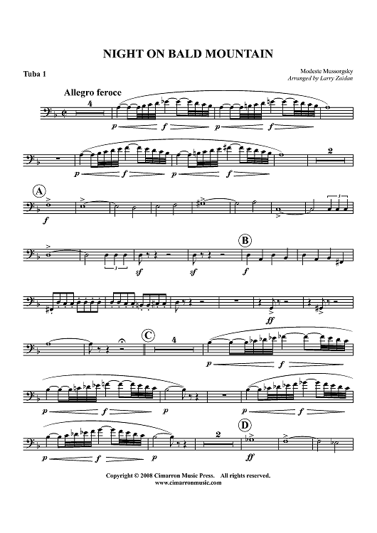 Digital Sheet Music for Night on Bald Mountain - Tuba 1 by Larry Zaidan, Modest Mussorgsky scored for Tuba Quartet; id:416042