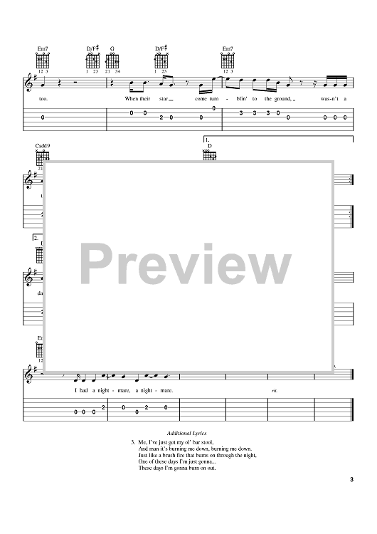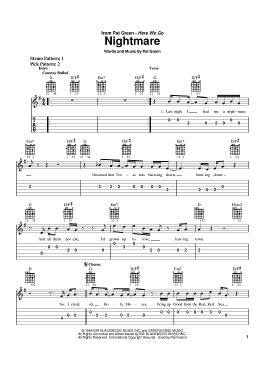 Digital Sheet Music for Nightmare by Pat Green scored for Easy Guitar Tab; id:372814