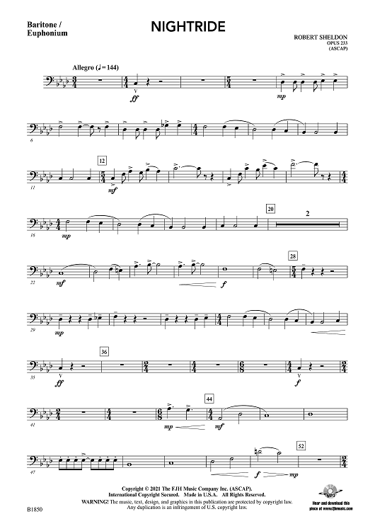 "Nightride - Baritone / Euphonium" Sheet Music by Robert Sheldon