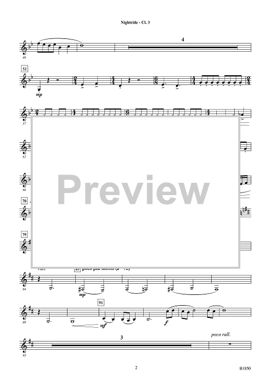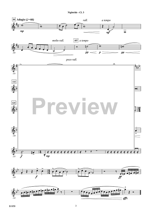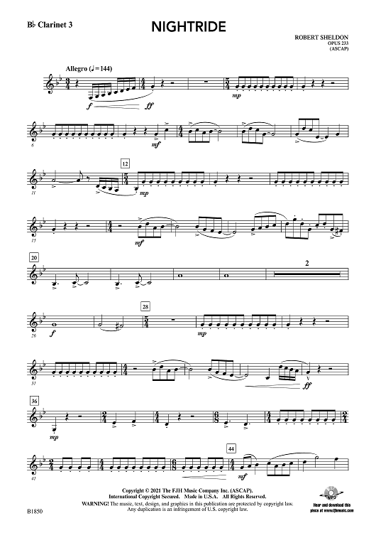 Digital Sheet Music for Nightride - Bb Clarinet 3 by Robert Sheldon scored for Concert Band; id:510551