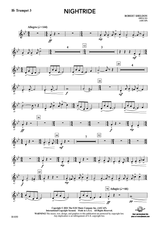 Digital Sheet Music for Nightride - Bb Trumpet 3 by Robert Sheldon scored for Concert Band; id:510559