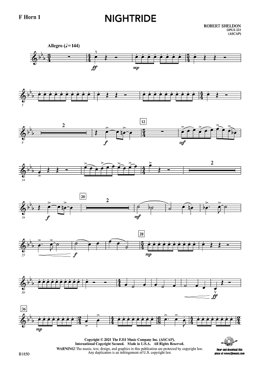 Digital Sheet Music for Nightride - F Horn 1 by Robert Sheldon scored for Concert Band; id:510560