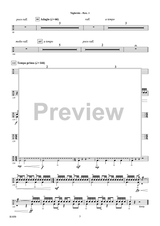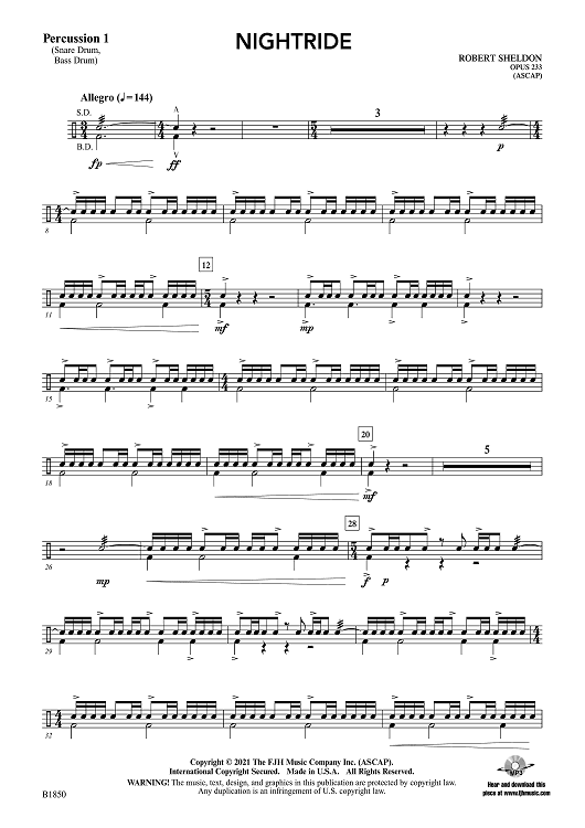 Digital Sheet Music for Nightride - Percussion 1 by Robert Sheldon scored for Concert Band; id:510571