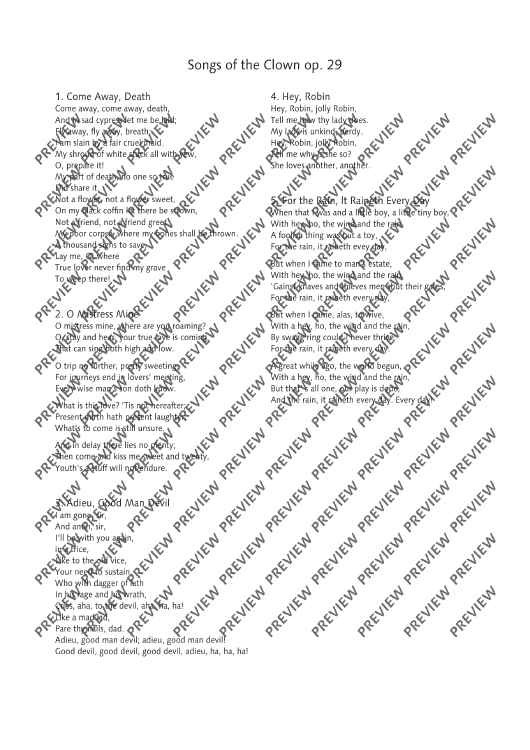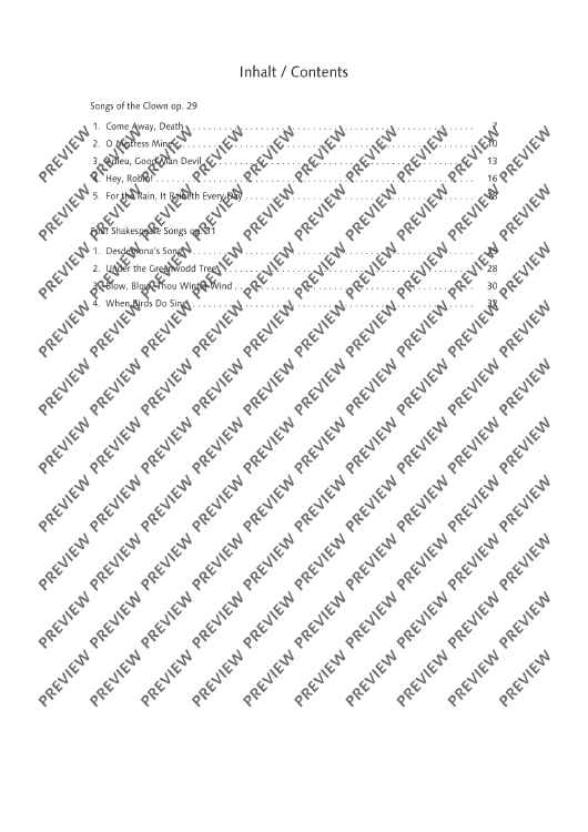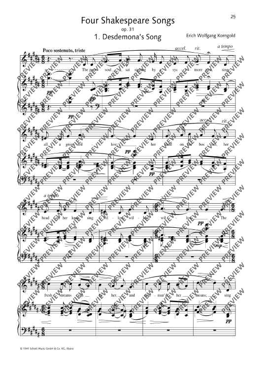 "Nine Shakespeare Songs" Sheet Music by Erich Wolfgang Korngold