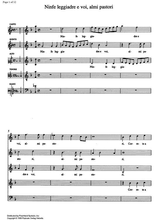 "Ninfe leggiadre e voi, almi pastori" Sheet Music by Alessandro Orologio