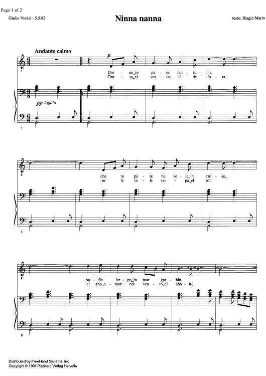 "Ninna Nanna" Sheet Music by Giulio Viozzi
