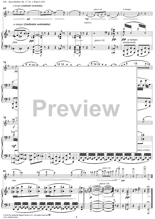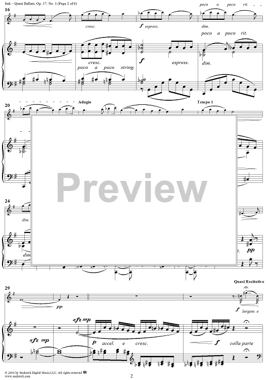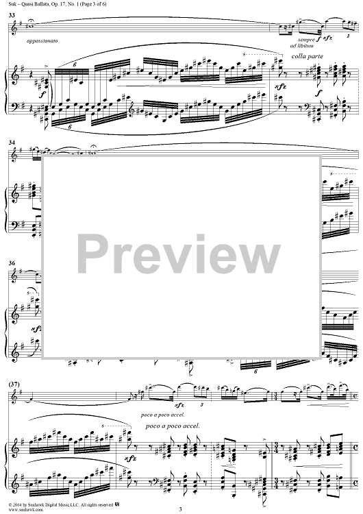 Digital Sheet Music for No. 1: Quasi Ballata - Piano Score by Josef Suk scored for Violin/Piano; id:303301