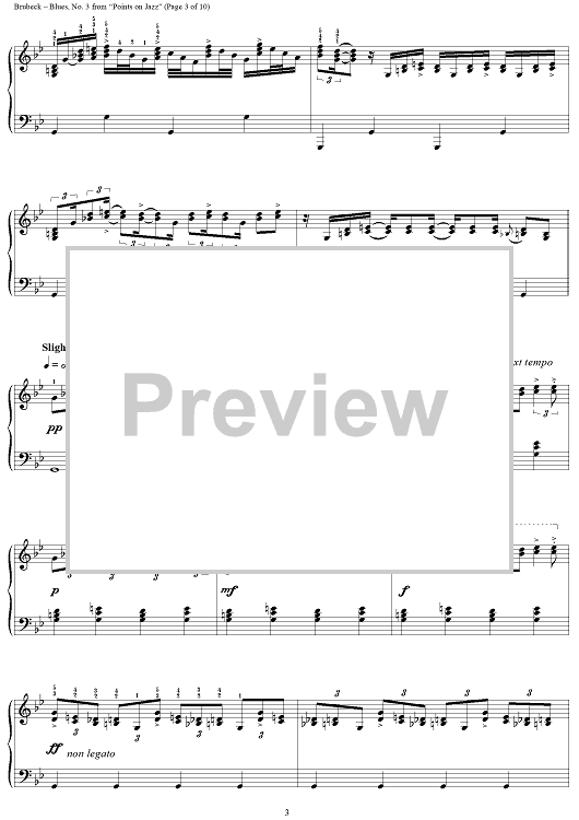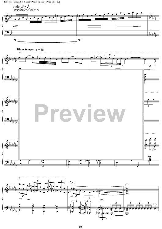 Digital Sheet Music for No. 3: Blues by Howard Brubeck, Dave Brubeck scored for Piano Solo; id:275954