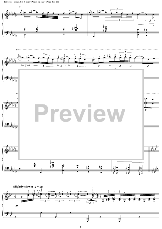 "No. 3: Blues" Sheet Music by Dave Brubeck