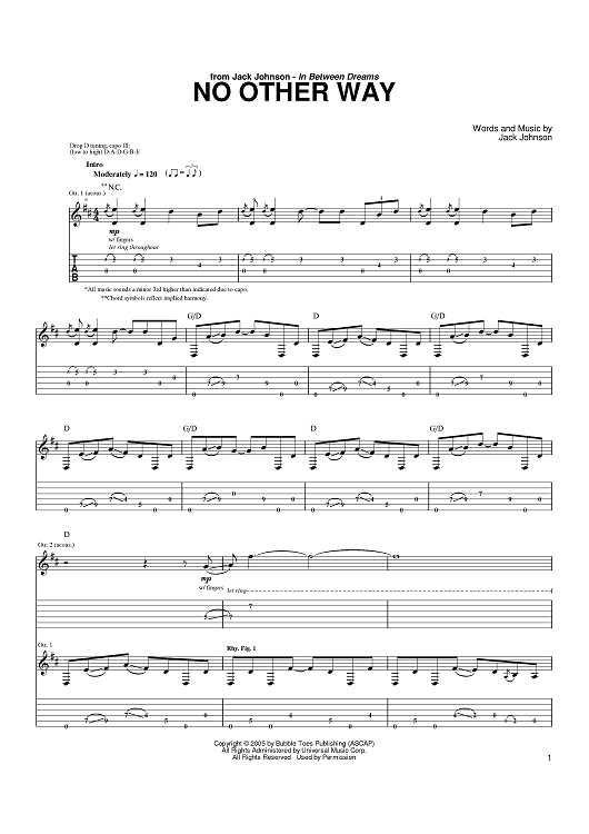Digital Sheet Music for No Other Way by Jack Johnson scored for Guitar Tab; id:384991