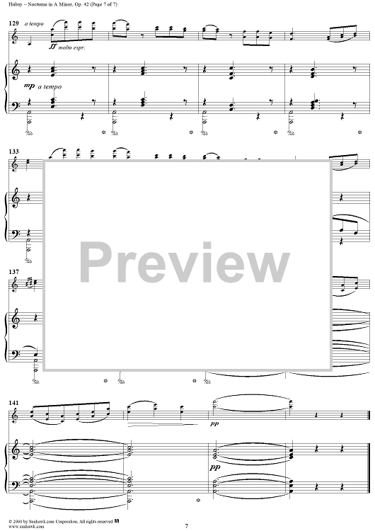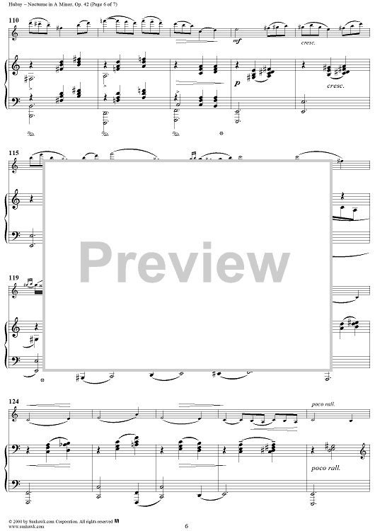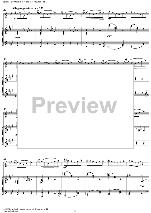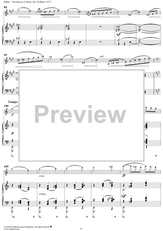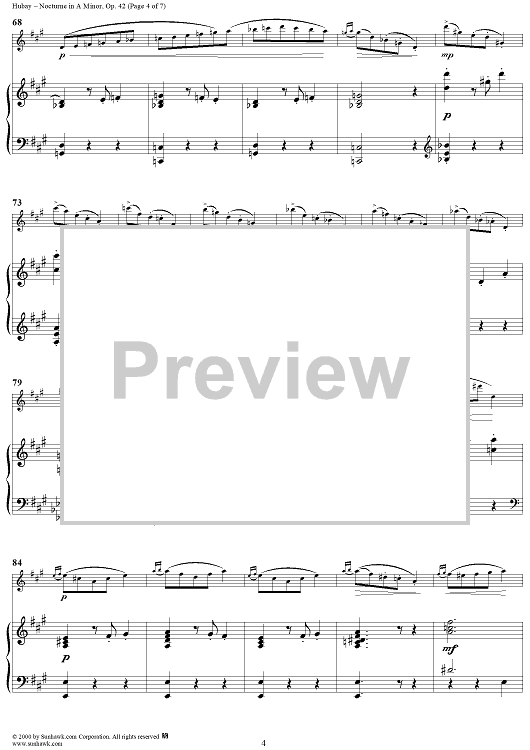Digital Sheet Music for Nocturne in A Minor, Op. 42 - Piano by Jeno Hubay scored for Violin/Piano; id:266171