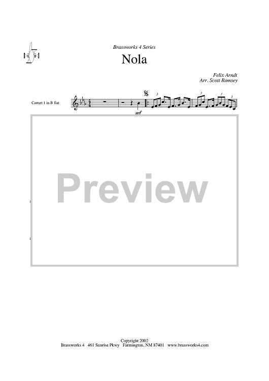 Digital Sheet Music for Nola - Cornet 1 in Bb by Felix Arndt, Scott A. Ramsey scored for Brass Quartet; id:316843