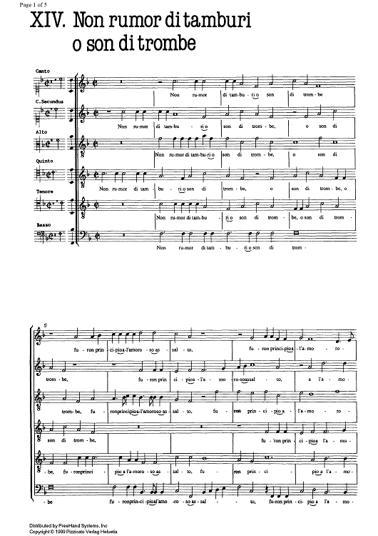 "Non rumor di tamburi o son di trombe" Sheet Music by Marc' Antonio Pordenon