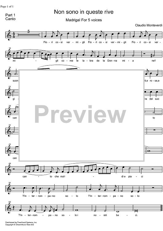 "Non sono in queste rive - Voice" Sheet Music by Claudio Monteverdi