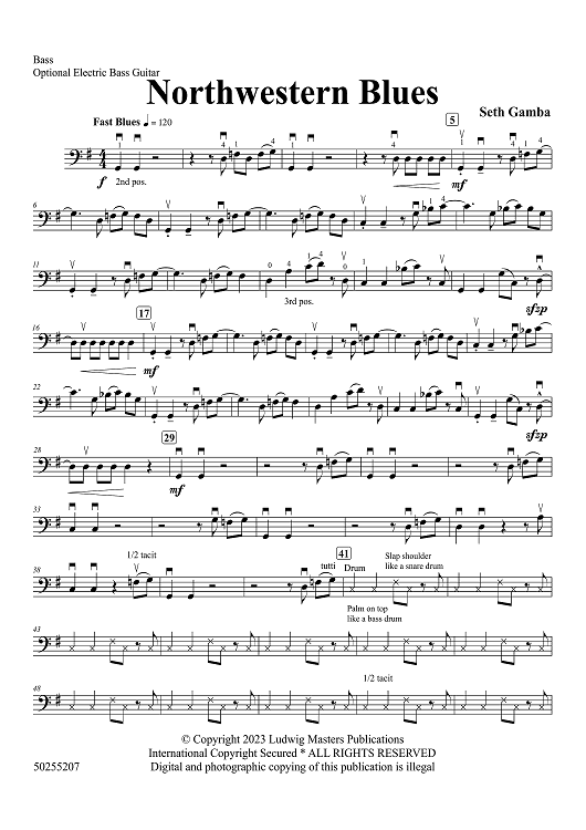 Digital Sheet Music for Northwestern Blues - Bass / opt. Electric Bass by Seth Gamba scored for Orchestra; id:507925