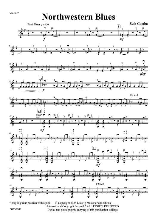 "Northwestern Blues - Violin 2" Sheet Music by Seth Gamba