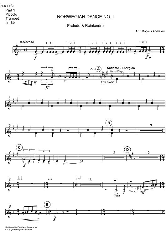 Digital Sheet Music for Norwegian Dance No. 1 - Piccolo Trumpet in B-flat by Mogens Andresen scored for Brass Ensemble; id:323933