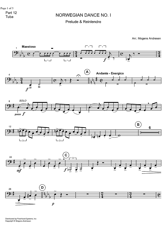 Digital Sheet Music for Norwegian Dance No. 1 - Tuba by Mogens Andresen scored for Brass Ensemble; id:323944
