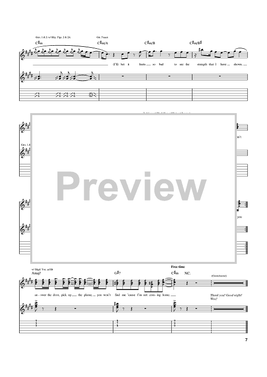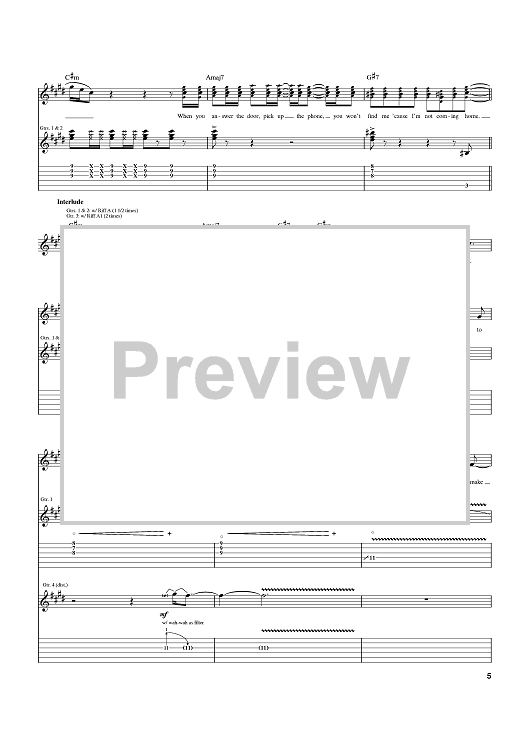 Digital Sheet Music for Not Coming Home by Adam Levine, Jesse Carmichael, Maroon 5, Ryan Dusick scored for Guitar Tab; id:373487