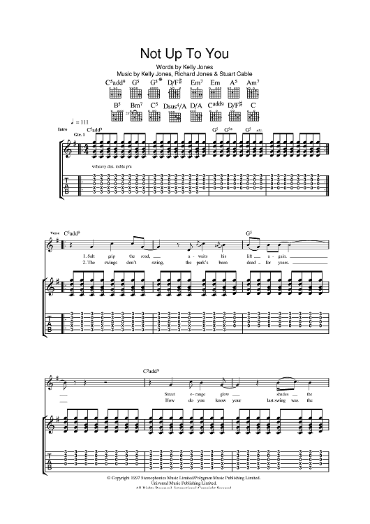 Digital Sheet Music for Not Up To You by Stuart Cable, Kelly Jones, Richard Jones, Stereophonics scored for Guitar Tab; id:393450