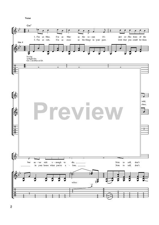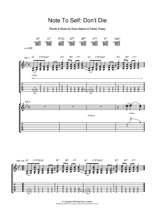 Digital Sheet Music for Note To Self: Don't Die by Ryan Adams scored for Guitar Tab; id:401676