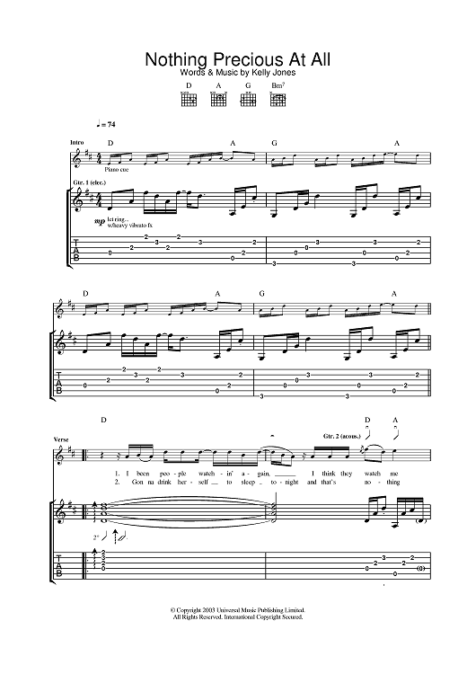 Digital Sheet Music for Nothing Precious At All by Stereophonics scored for Guitar Tab; id:378092