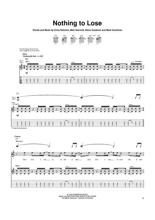 Digital Sheet Music for Nothing To Lose by Steve Goodrum, Matt Hammitt, Chris Rohman, Sanctus Real scored for Guitar Tab; id:372546