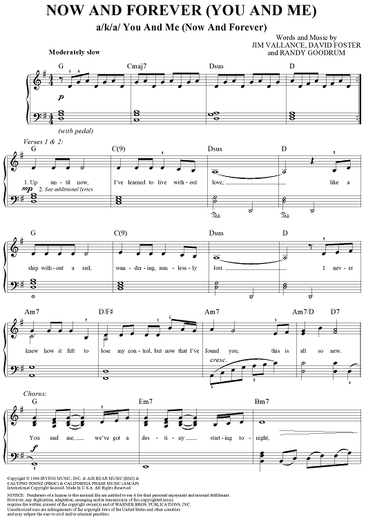 "Now and Forever (You and Me)" Sheet Music by Randy Goodrum