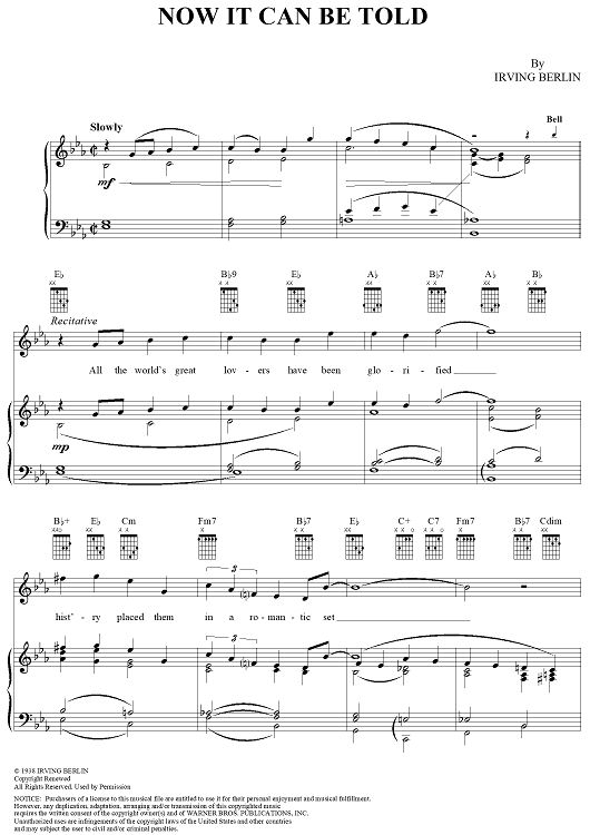 Digital Sheet Music for Now It Can Be Told by Irving Berlin scored for Piano/Vocal/Chords; id:305421