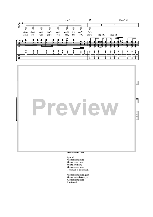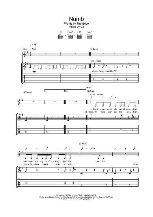 Digital Sheet Music for Numb by U2 scored for Guitar Tab; id:376930