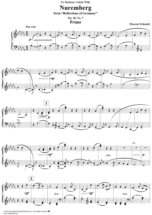 Digital Sheet Music for Nuremberg, from "Reflections of Germany", Op. 28 by Florent Schmitt scored for 1 Piano, 4 Hands; id:295999