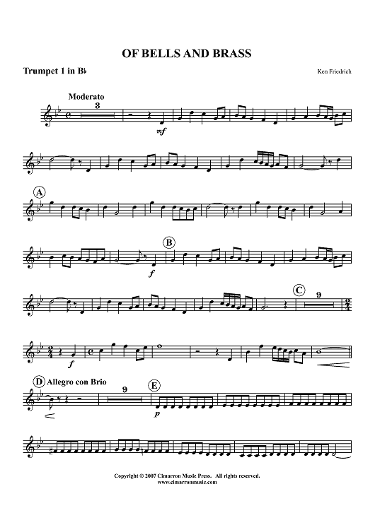 "Of Bells and Brass - Trumpet 1 in Bb" Sheet Music by Ken Friedrich
