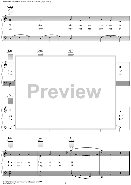 Digital Sheet Music for Oh Dear, What Can the Matter Be? by Traditional scored for Easy Piano/Vocal; id:261741