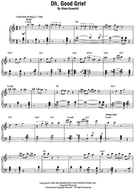 Digital Sheet Music for Oh, Good Grief by Vince Guaraldi scored for Piano Solo; id:468890