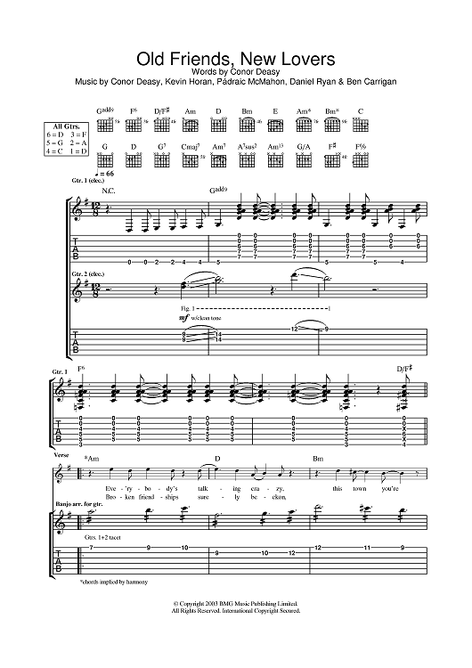Digital Sheet Music for Old Friends, New Lovers by The Thrills scored for Guitar Tab; id:378124