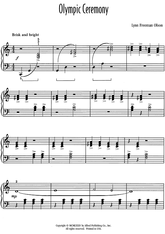 "Olympic Ceremony" Sheet Music by Lynn Freeman Olson