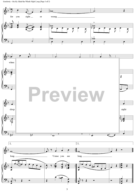 Digital Sheet Music for On My Mind the Whole Night Long by George Gershwin, Arthur Jackson scored for Piano/Vocal/Chords; id:312636