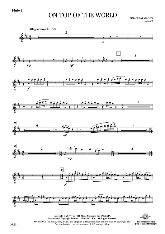 "On Top of the World - Flute 2" Sheet Music by Brian Balmages