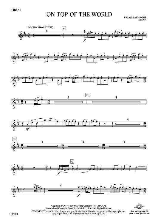 "On Top of the World - Oboe 1" Sheet Music by Brian Balmages