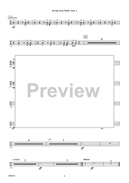 "On Top of the World - Percussion 2" Sheet Music by Brian Balmages