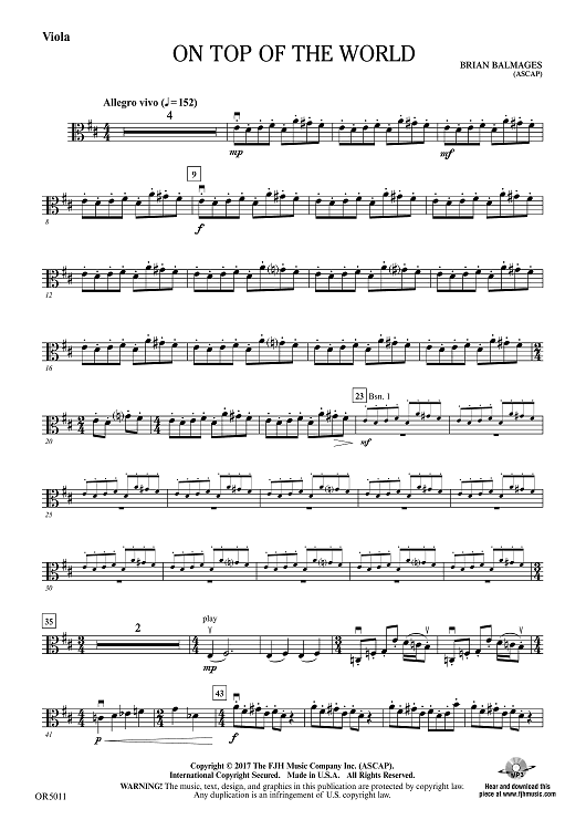 "On Top of the World - Viola" Sheet Music by Brian Balmages