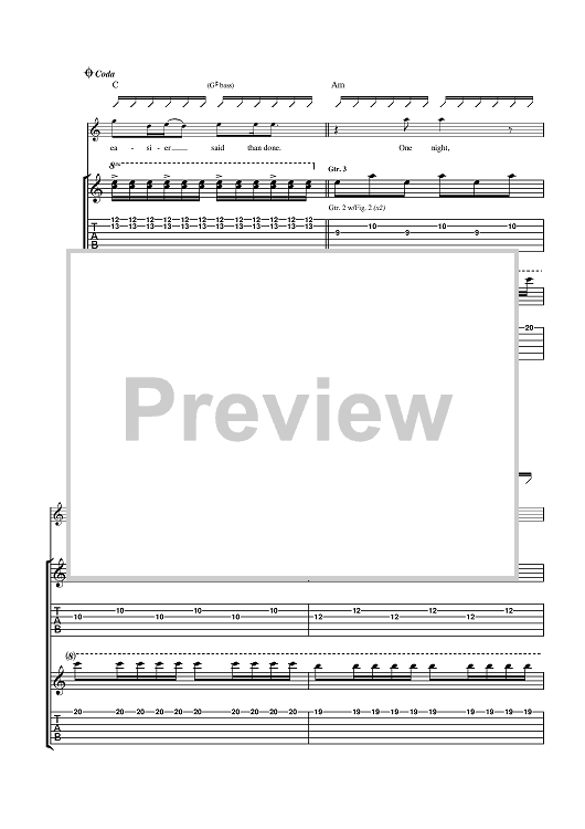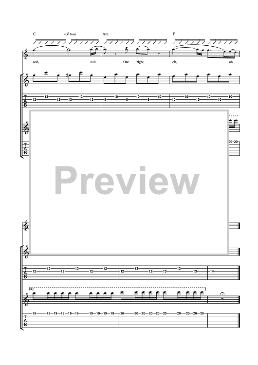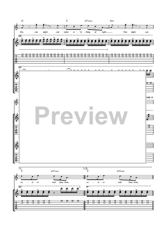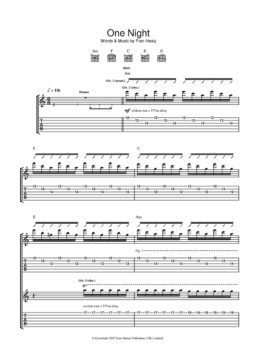 Digital Sheet Music for One Night by Fran Healy, Travis scored for Guitar Tab; id:402288
