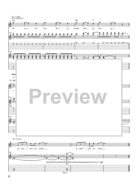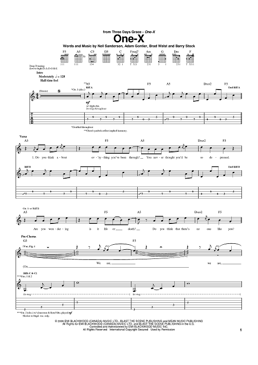 Digital Sheet Music for One-X by Neil Christopher Sanderson, Adam Gontier, Brad Walst, Three Days Grace, Barry Stock scored for Guitar Tab; id:394528