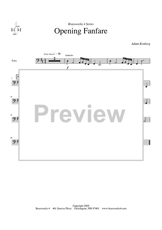 Digital Sheet Music for Opening Fanfare - Tuba by Adam Kosberg scored for Brass Ensemble; id:428516